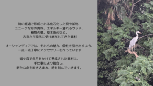 海や森で年月をかけて熟成された素材は、手仕事により融合し、